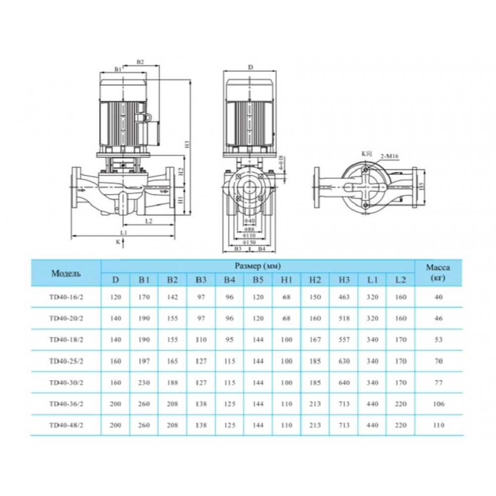 CNP TD 40-25/2 SWHCJ - одноступенчатый рядный циркуляционный центробежный вертикальный насос одностороннего всасывания с соосным размещением патрубков «in-line».